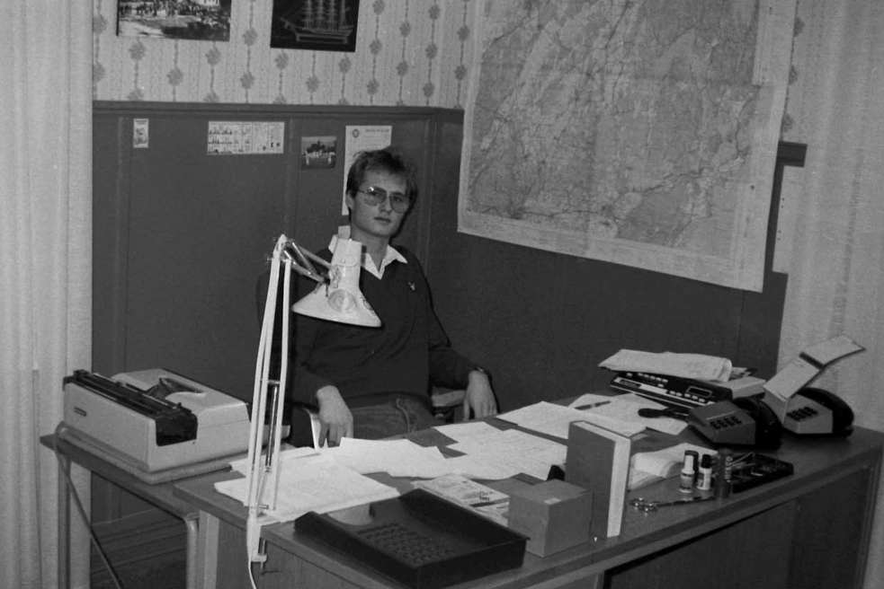 En lärdom efter många år inom journalistiken är förmågan att prestera och skriva begripligt under tidspress.Bilden är tagen på Mariestads-Tidningens lokalredaktion i Töreboda 1983.